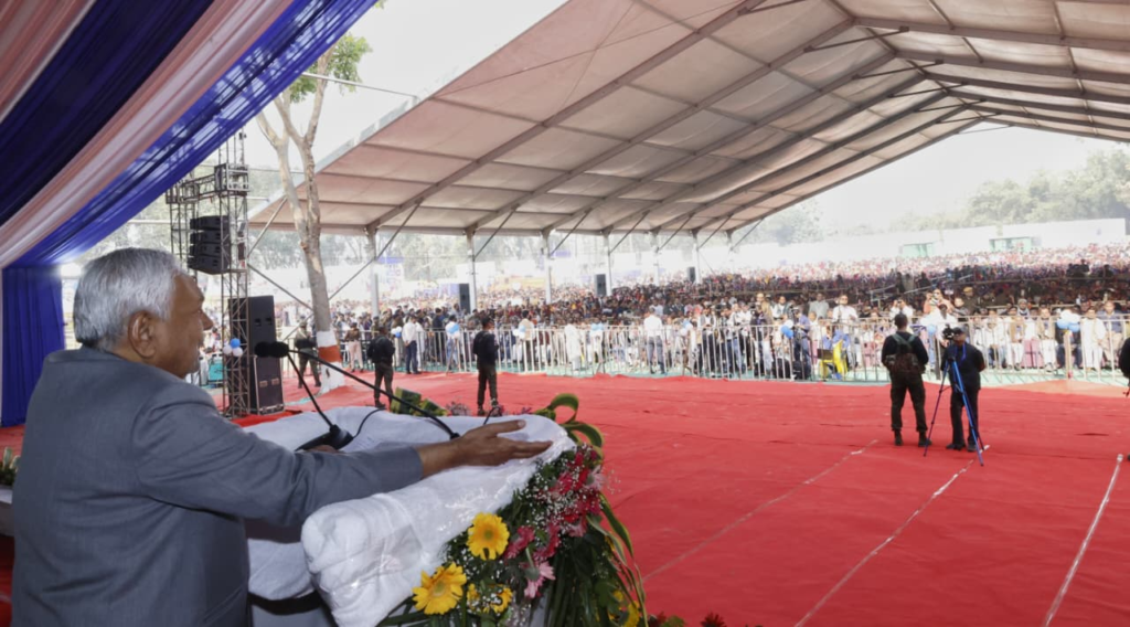 नीतीश का जन संवाद महिलाओं का शक्तिकरण 50% पंचायत आरक्षण से जीविका की 1.44 करोड़ दीदियाँ, पुलिस में सबसे ज़्यादा महिलाएँ